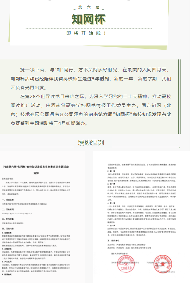 活动预告 | 河南第六届知网杯高校知识发现有奖竞赛系列主题活动即将开始!